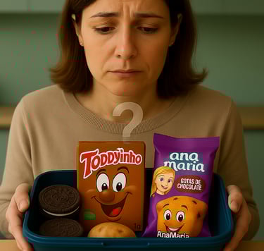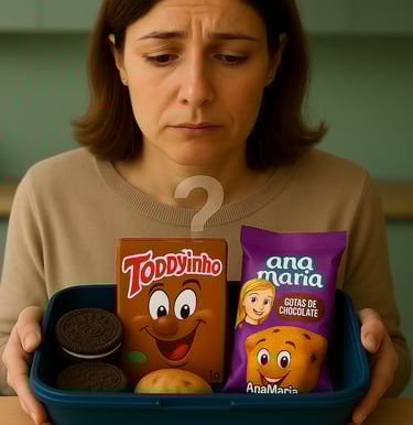 Devido o tempo corrido das mamães e da resistência das crianças com os alimentos saudáveis, o lanche escolar acaba sendo aquilo que é mais prático, como biscoitos recheados, sucos de caixinha, bolinhos, salgadinhos, tudo industrializado e ultraprocessado.
